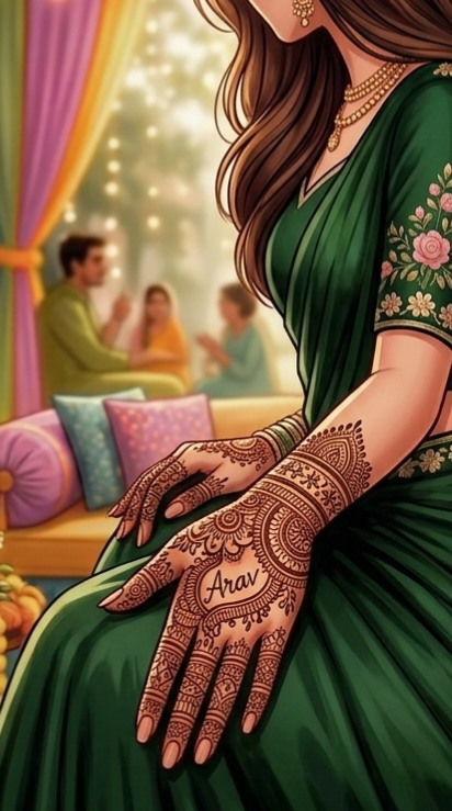 The Mehndi function was full of life. The whole place was decorated with bright flowers, fairy lights, and colorful drapes that moved softly with the evening breeze. The sound of laughter echoed in every corner, mixed with music playing in the background. Girls were sitting in groups, showing each other their mehndi designs, teasing, smiling, and enjoying every moment of the celebration.