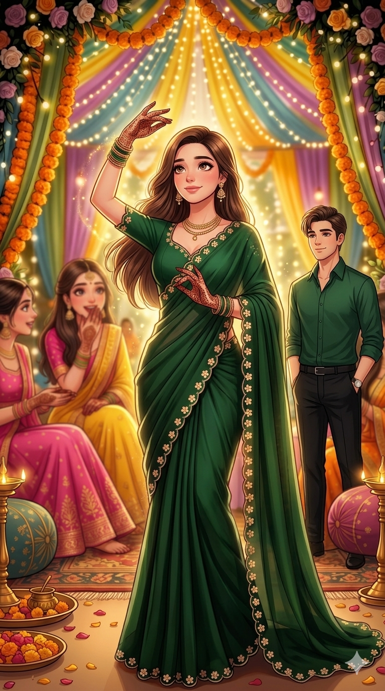The soft glow of fairy lights wrapped around the trees gave the entire resort a dreamy, almost surreal vibe. The night air carried a faint fragrance of henna, roses, and expensive perfumes, blending perfectly with the distant chatter of relatives and the occasional clinking of bangles. It was Nityaโ€™s mehndi function everything was beautiful, elegant, perfectly plannedโ€ฆ except for one thing.